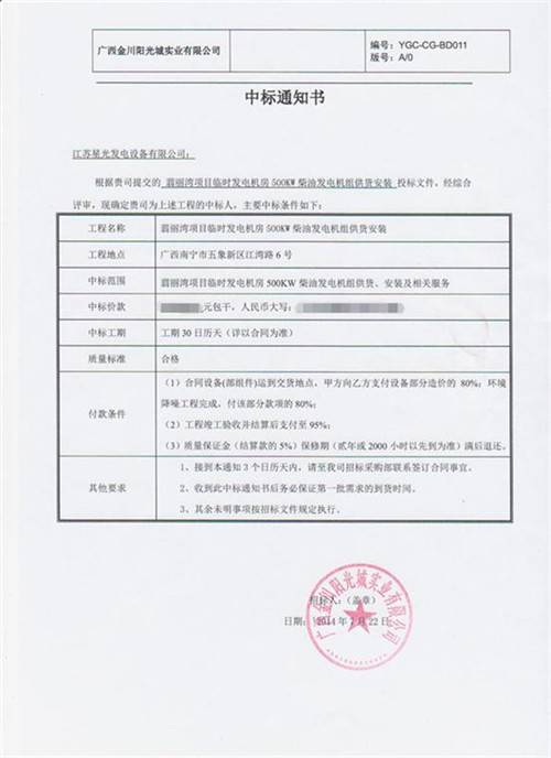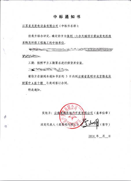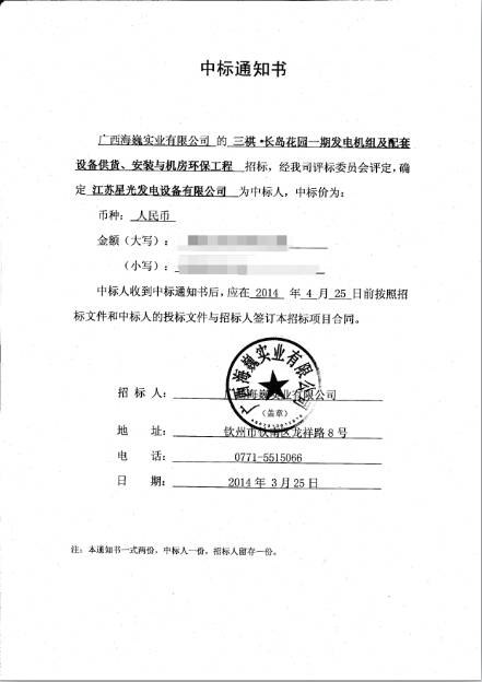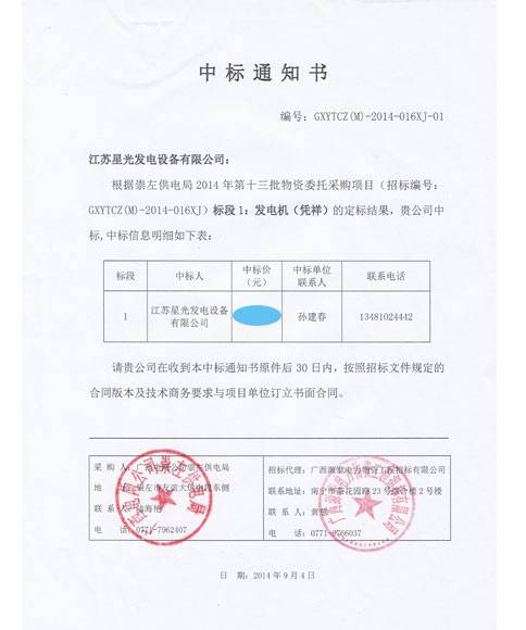 星光發(fā)電機(jī)榮譽(yù)