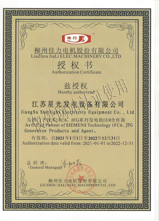 星光發(fā)電機(jī)榮譽(yù)
