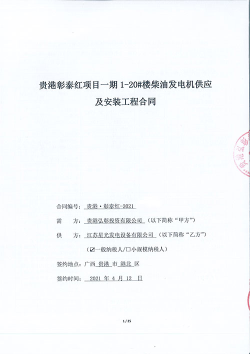 江蘇星光動力集團 >> 新聞動態(tài) >> 恭喜我司與貴港·彰泰紅項目一期成功簽訂400KW柴油發(fā)電機組一臺