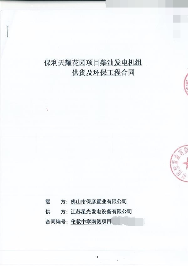 熱烈祝賀江蘇星光廣西分公司簽訂保利天耀花園項目上柴發(fā)電機(jī)組400KW一臺,截止今天,星光公司與保利集團(tuán)有著長久合作關(guān)系,且我公司是深圳市保利房地產(chǎn)開發(fā)有限公司2021-2023年度柴油發(fā)電機(jī)組項目供應(yīng)商。星光公司是值得信賴的長期合作伙伴。