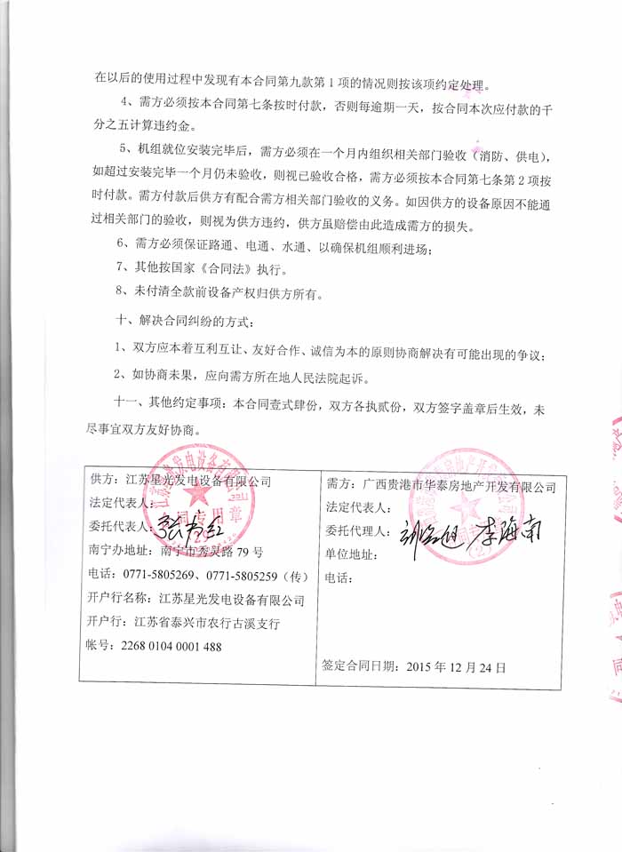 江蘇星光動(dòng)力集團(tuán) >> 新聞動(dòng)態(tài) >> 廣西貴港市華泰房地產(chǎn)開(kāi)發(fā)有限公司550KW上柴發(fā)電機(jī)組購(gòu)銷合同