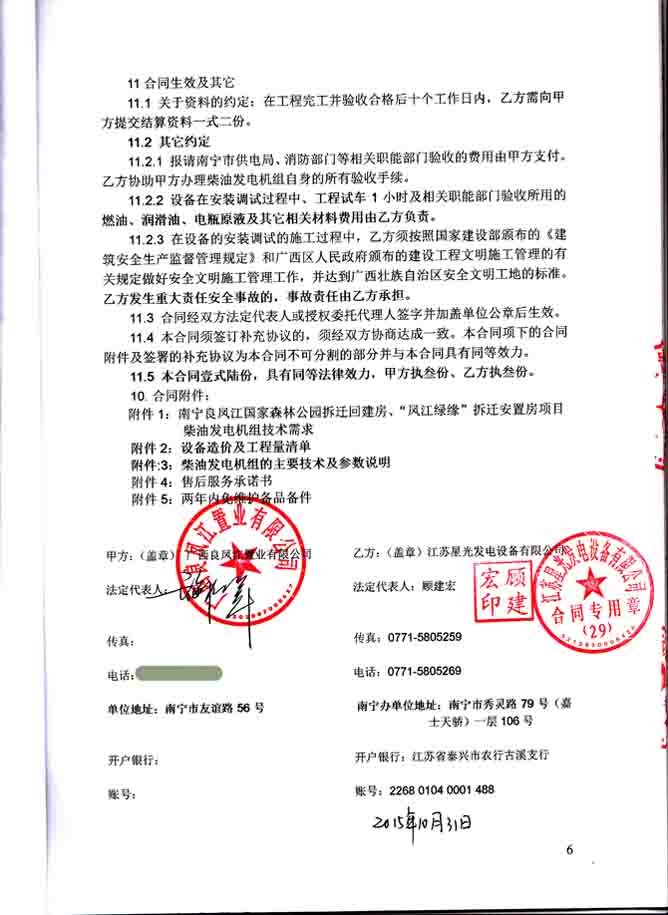 江蘇星光動力集團 >> 新聞動態(tài) >> 鳳江綠緣拆遷安置房項目500KW上柴發(fā)電機組采購安裝合同