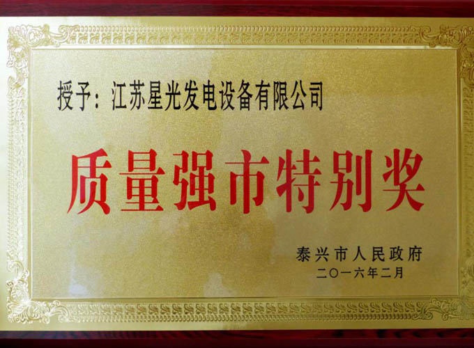 日前,在全市質(zhì)量提升暨質(zhì)量強(qiáng)鎮(zhèn)(園區(qū)、街道)、質(zhì)量強(qiáng)企、質(zhì)量強(qiáng)業(yè)工作推進(jìn)大會(huì)上,江蘇星光發(fā)電設(shè)備有限公司被授予“質(zhì)量強(qiáng)市特別獎(jiǎng)”。