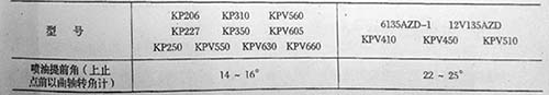135基本型柴油發(fā)動機(jī)的噴油提前角規(guī)定如下: