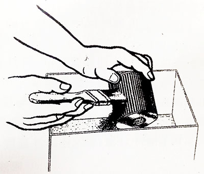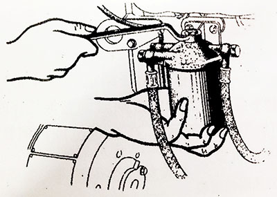 發(fā)電機組燃油濾清器用兩個M8-6H螺釘固定在機體或支架上,用戶在使用中如發(fā)現(xiàn)供油不通暢,則有濾芯堵塞的可能。此時,應停車放掉燃油,可直接在柴油發(fā)電機組上松開拉桿螺母,卸下外殼,取出濾芯(如圖2所示),然后將濾芯浸在汽油或柴油中用毛刷輕輕地洗掉污物(如圖3所示),如果濾芯破裂或難以清洗,則必須換新,然后按圖1所示裝好,并注入清潔的燃油。