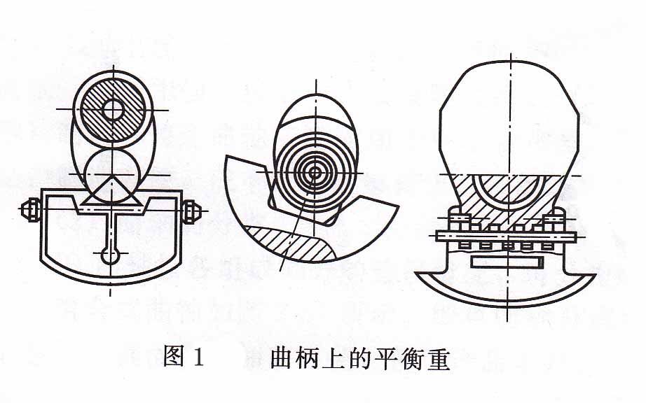如圖1所示,平衡重通常設在與連桿軸頸相對的一側曲柄臂上,其開關多為扇形。平衡重的作用是平衡連桿軸頸及曲柄臂的重量、離心力及其力矩,以減輕主軸承的載荷,增加運轉的平穩(wěn)性。