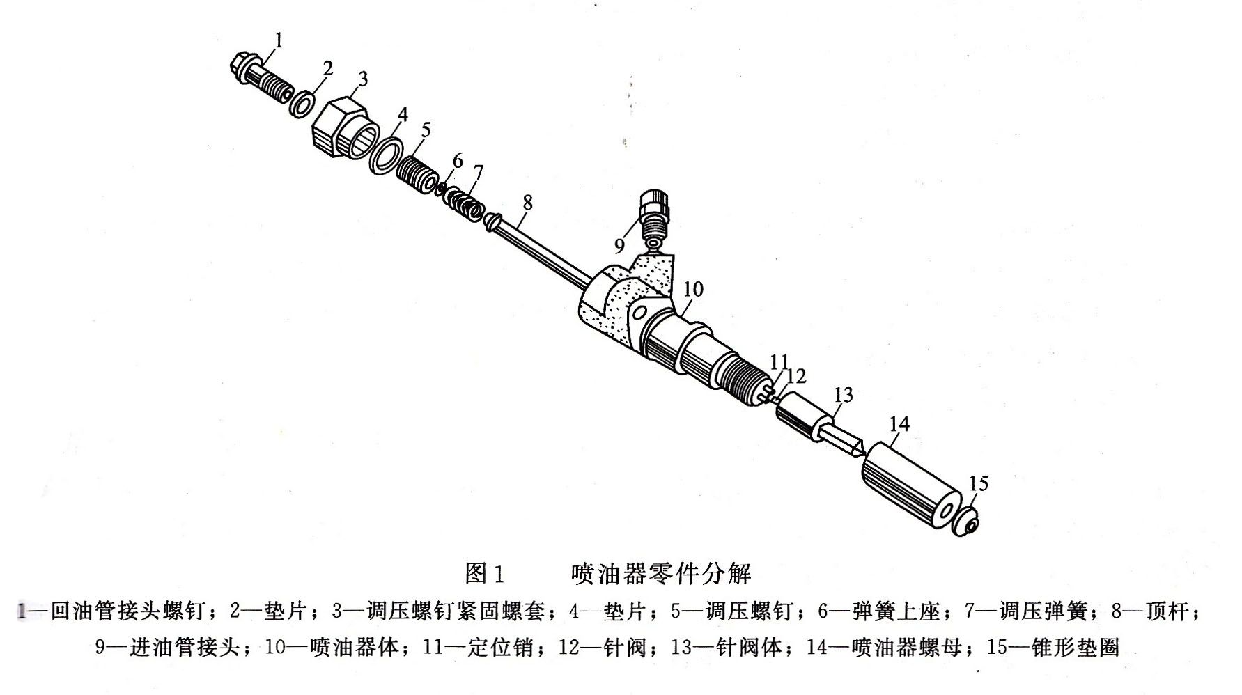 4、裝配好的噴油器總成應在試驗臺上進行密封和噴霧試驗,并進行噴油開啟壓力的調(diào)整。