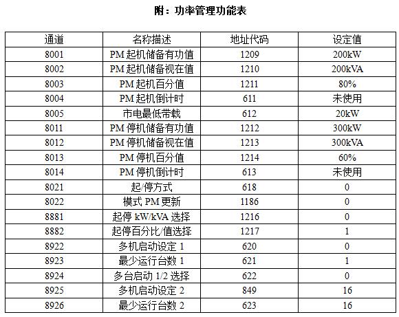 3)發(fā)電機組潤滑油壓低、潤滑油溫度高、冷卻水溫高、冷卻水斷水、燃油量過低、超速、超頻、低頻、速度信號丟失、自啟動失敗、過電流、電壓過高或過低、廠用電相序錯誤。發(fā)電機相序錯誤、發(fā)電機相序錯誤等保護停機功能。
