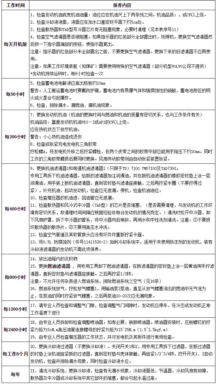 柴油發(fā)電機(jī)組維護(hù)保養(yǎng)內(nèi)容表