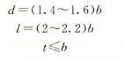 波形鍵設(shè)計(jì)和制作時(shí),通常將波形鍵(圖2-18)的凸緣直徑d、寬度b)、間距l(xiāng)(波形槽間距t)規(guī)定成標(biāo)準(zhǔn)尺寸,根據(jù)機(jī)件受力大小和鑄件壁厚決定波形鍵的凸緣個(gè)數(shù)、每個(gè)斷裂部位安裝波形鍵數(shù)和波形槽間距等。一般取b為3~6mm,其他尺寸可按下列經(jīng)驗(yàn)公式計(jì)算: