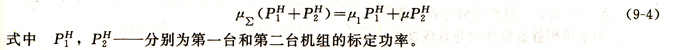 ”當量機組的概念是指各同步并聯(lián)運行機組的總和。即虛構(gòu)一臺機組,其功率等于并聯(lián)運行機組的總和,轉(zhuǎn)速等于同步轉(zhuǎn)速,調(diào)整特性由各機組確定。對于負載承載數(shù)分別為μ1μ2的兩臺機組,其當量機組的承載系數(shù)為μΣ,它所承受的功率為