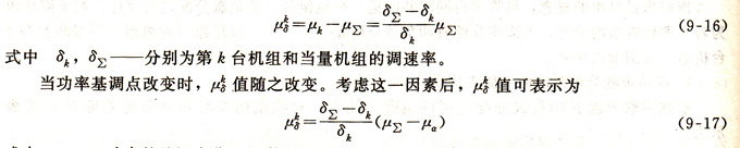 由于第k臺機組和當(dāng)量機組的調(diào)速率δ不同所引起的μk δ
